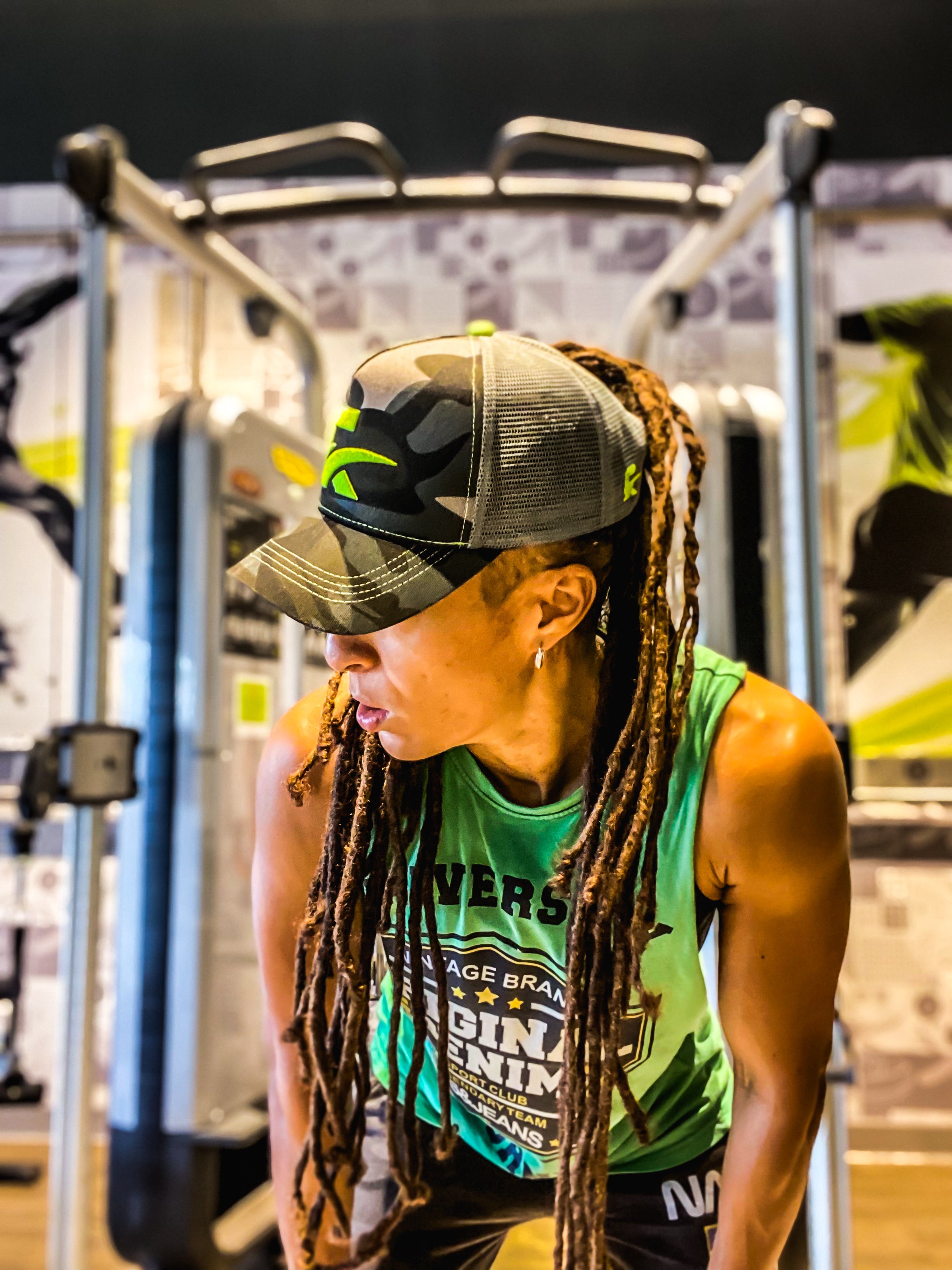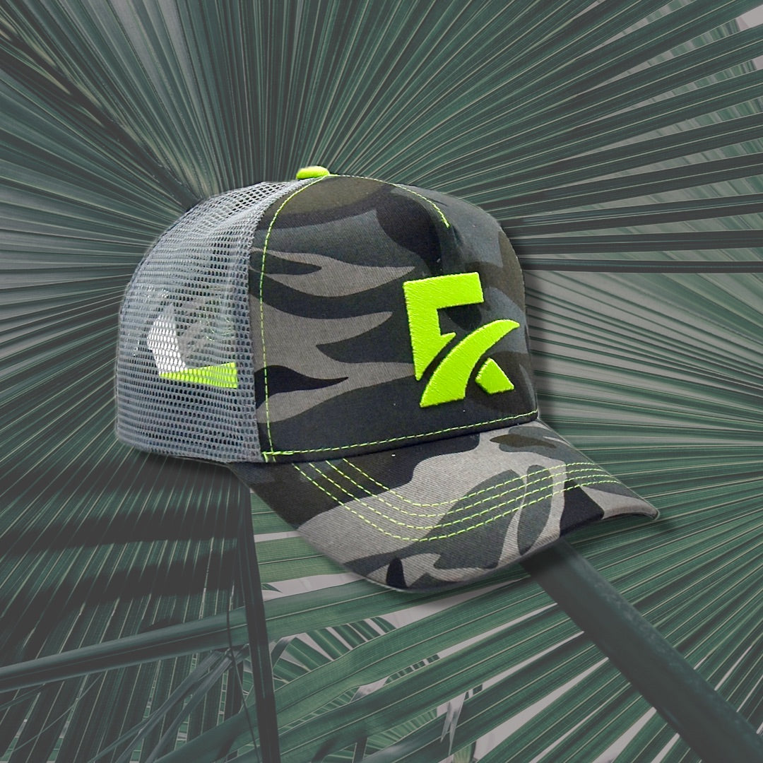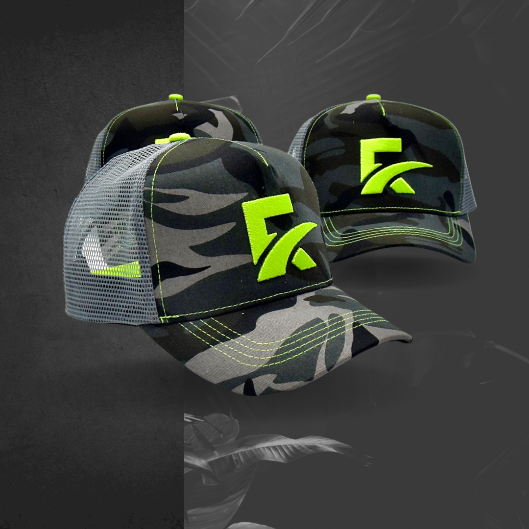 La Greenfield est la première création Hayafit qui a vu le jour en 2022. La couleur sobre de son camouflage laisse ressortir l’éclat de son logo vert brodé et de ses détails à tendance fluorescente.